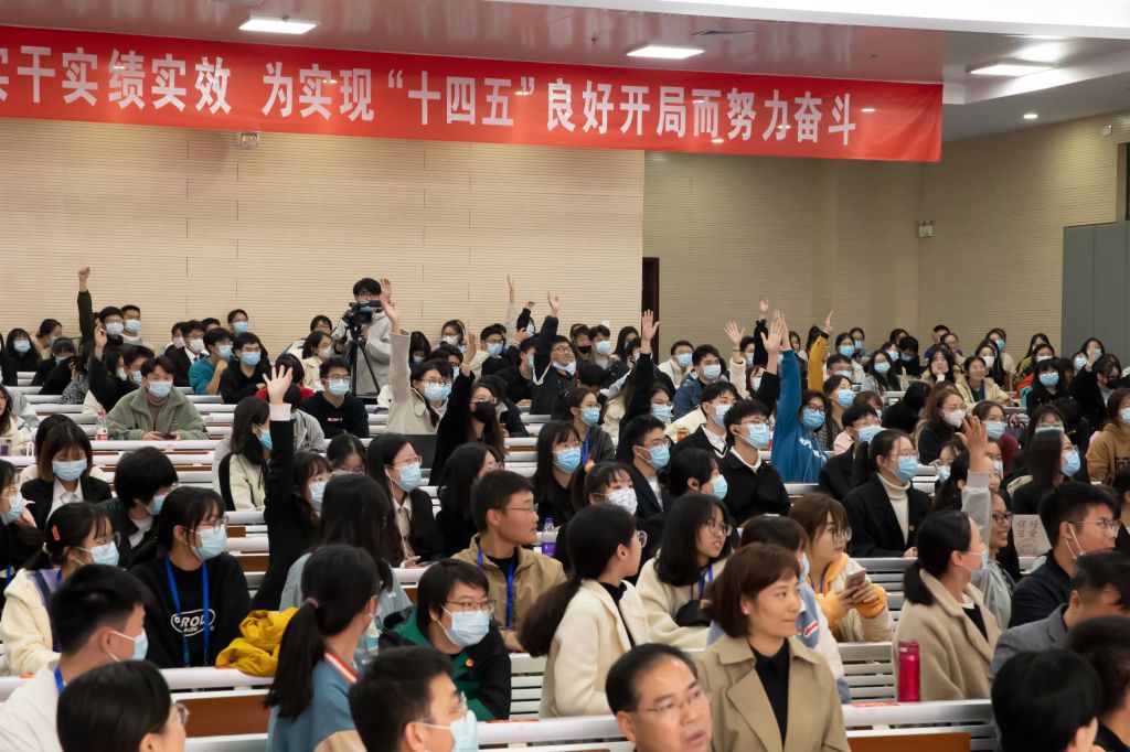 参赛及观摩的学生代表纷纷表示在活动中受教育、受鼓舞。21级英语(师范)专业的芮雪晴赛后表示:“这种方式学习党的历史我很喜欢,这不仅是对参赛选手参加党史学习教育成效的集中检验,也是我们全体同学学史力行的生动课堂。在比赛中我仿佛走过了中国共产党的百年奋斗路;听了大家的演讲,我也感受到了我肩上的重担:作为新时代的青年,我们要埋头苦干、勇毅前行,努力成长为意气风发、坚韧不拔的时代新人。”校团委副书记廖仲明表示:“我们希望通过知识竞赛、演讲比赛、微党课等更具有‘代入感’‘体验感’的活动形式,带领广大青年学子及时跟进学习党的十九届六中全会精神,让沉浸式、互动式的党史学习教育真正走到青年身边、走进青年心里。”